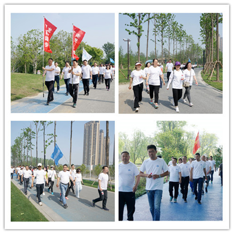 活動開始,首先,總經(jīng)理王智勇代表公司致詞,做了熱情洋溢的動員,接著,參加活動的各位領(lǐng)導(dǎo)為公司本部及四個子公司共五支代表隊進行了集中授旗,最后,隨著公司執(zhí)行董事張勇的隆重宣布和發(fā)令槍聲的響起,健步走活動正式開始。大家從風(fēng)景如畫的三河六岸公園音樂噴泉廣場出發(fā),沿著步道,一直走到今年新建成的南水北調(diào)源頭公園氣膜館。大家一個個精神飽滿,熱情高漲,意氣風(fēng)發(fā),邊走邊交流,細(xì)數(shù)著公司過去及現(xiàn)在發(fā)展歷程中的點點滴滴,同時,欣賞著公園美景,感受著健步走帶來的歡樂,大家一路走,一路笑,各種喜悅寫滿了笑臉。