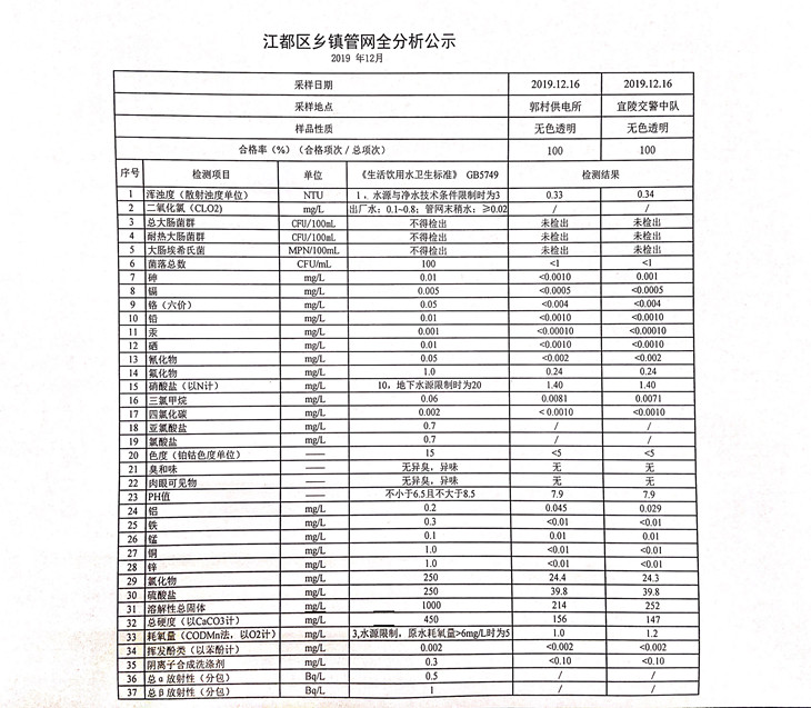 水質(zhì)公示
