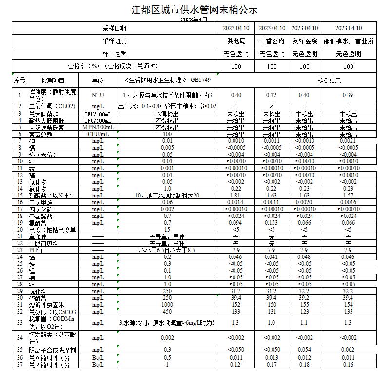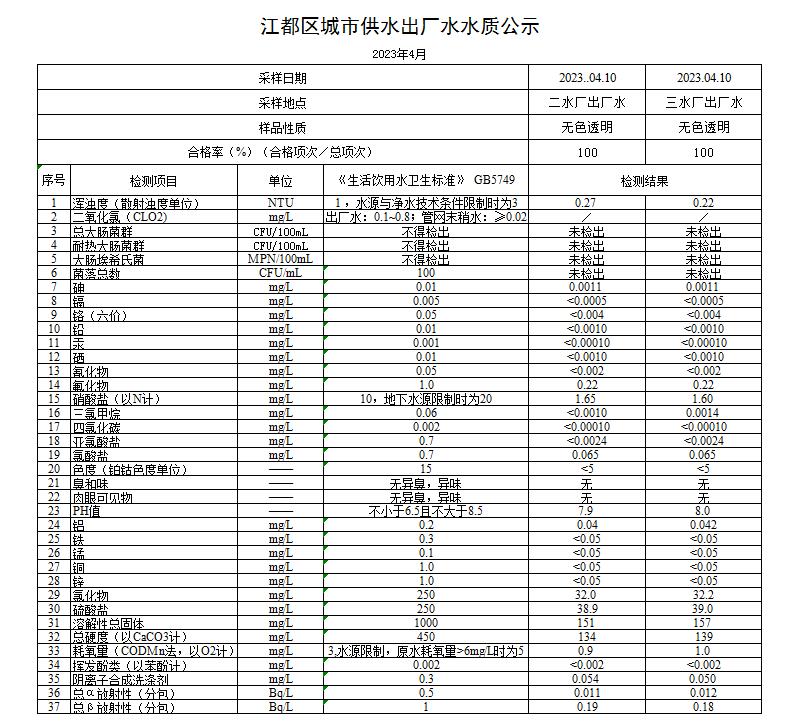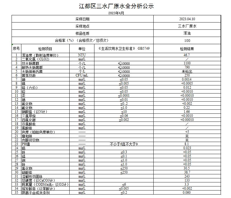 水質(zhì)公示