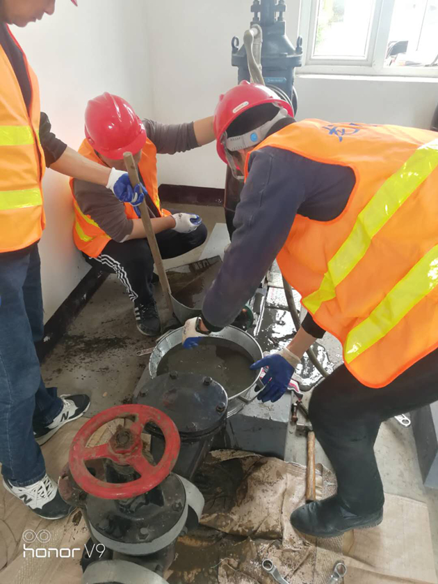 圖為邵伯污水廠螺桿泵搶修現(xiàn)場(chǎng)。