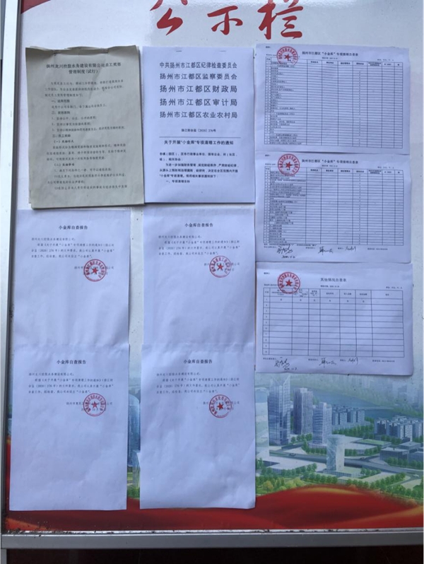 2020年10月?lián)P州市江都區(qū)政府發(fā)布通知,要求鎮(zhèn)(園區(qū))、區(qū)各行政事業(yè)單位、國有企業(yè)、村(社區(qū),組)、相關(guān)協(xié)會等開展“小金庫”專項清理工作。我公司接到通知后,嚴(yán)格按照文件精神執(zhí)行。