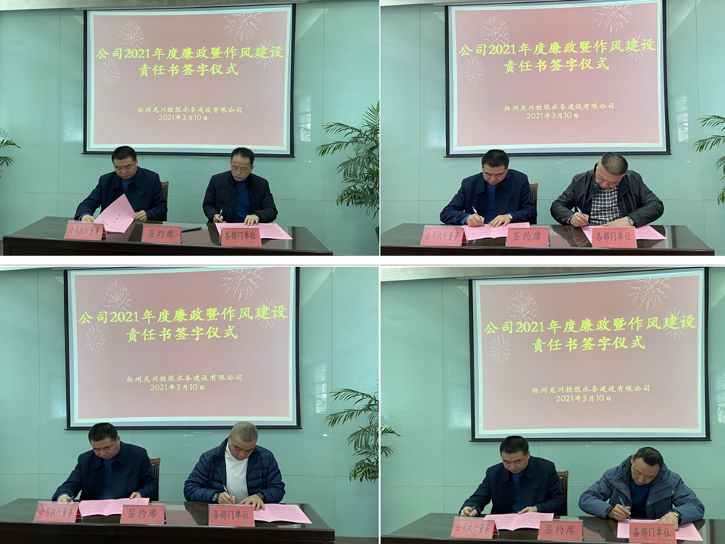 為進(jìn)一步抓好龍川水務(wù)公司各部門(mén)、子公司的廉政暨作風(fēng)建設(shè),切實(shí)增強(qiáng)干部職工的廉政勤政意識(shí)。3月10日下午,公司在西二樓會(huì)議室舉行了2021年度廉政暨作風(fēng)建設(shè)責(zé)任書(shū)簽訂儀式,儀式由公司黨總支副書(shū)記、副總經(jīng)理石元忠同志主持。