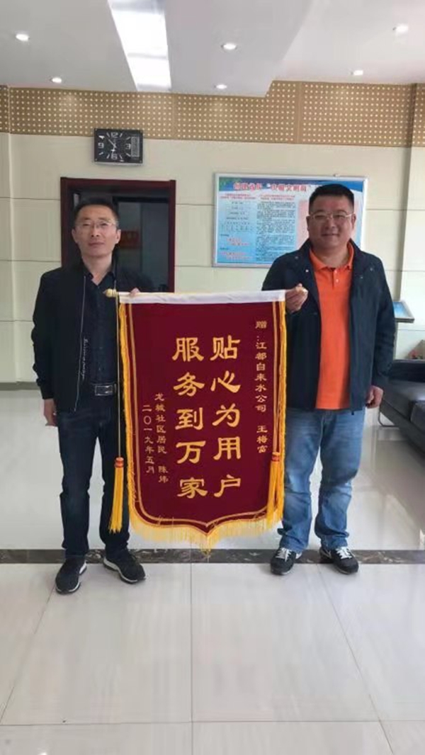 2019年5月的一天,自來水公司又收到用戶送來的錦旗,原來是王梅富同志又一次解決了用戶家中漏水的問題。當(dāng)公司打電話告知在外面工作的王梅富同志來大廳接受這一喜訊時(shí),他在電話里說這是他應(yīng)該做的,十分感謝這位用戶的好意,但是今天任務(wù)重,就來不及趕回來當(dāng)面感謝了,他承諾以后會一如既往的認(rèn)真工作,不辜負(fù)這份榮譽(yù)。