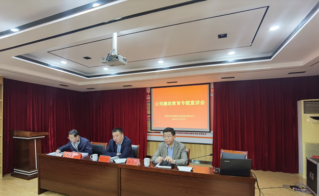為了不斷增強(qiáng)黨性觀念和廉潔從政從業(yè)意識(shí),進(jìn)一步抓好龍川水務(wù)公司各部門(mén)、子公司的廉政建設(shè)工作,切實(shí)增強(qiáng)各級(jí)黨員干部廉政意識(shí),11月4日下午,公司在東四樓黨員活動(dòng)室舉行廉政教育宣講會(huì),龍川控股副總經(jīng)理兼水務(wù)公司執(zhí)行董事張勇同志,公司領(lǐng)導(dǎo)班子成員王智勇、劉書(shū)政、石元忠等出席會(huì)議,公司黨總支和第一、二支部的全體委員、公司所屬各部門(mén)、子公司三級(jí)以上管理人員共70余人參加會(huì)議。