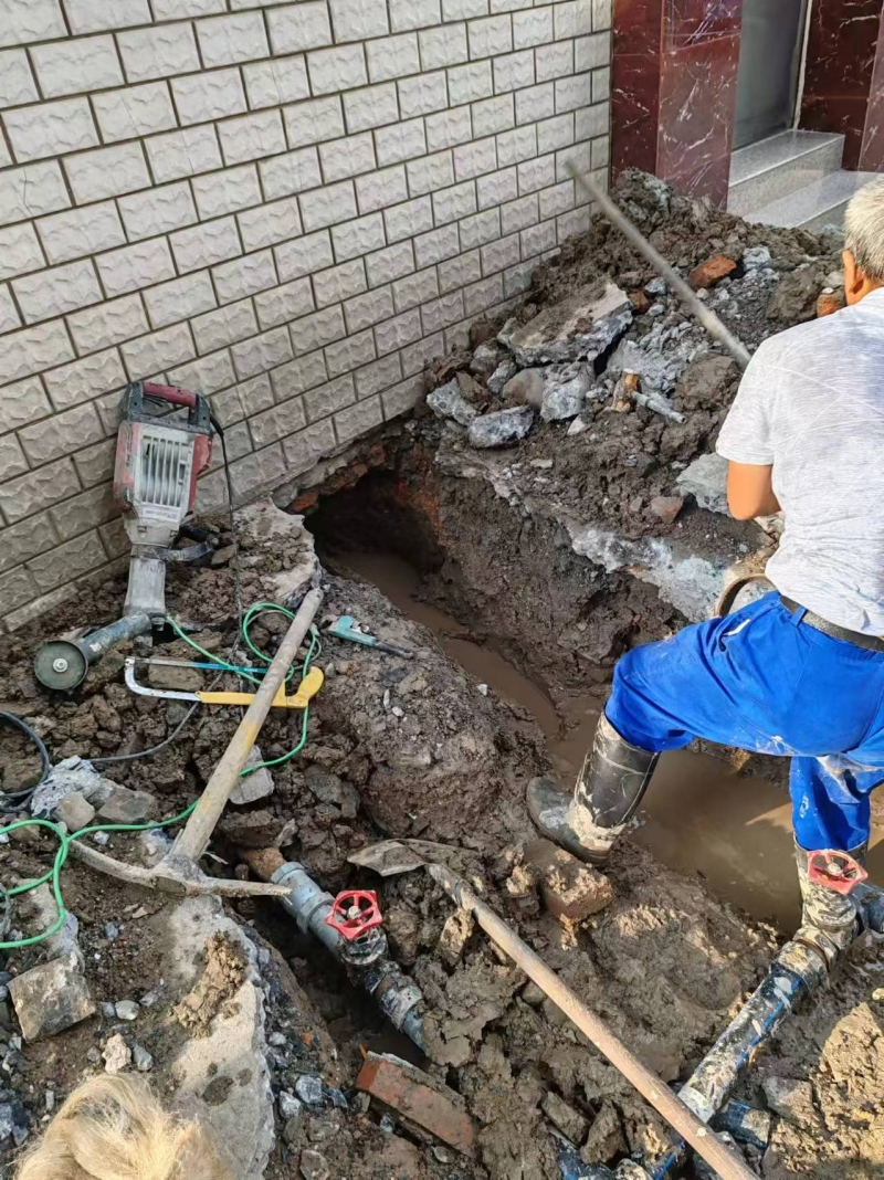 近期玉帶公寓用戶反映21幢、22幢高層無水可用,接到用戶報修后,自來水公司管網(wǎng)辦副主任王曉靜同志與龍泉建設(shè)工程公司維修部主任李兆軍同志帶領(lǐng)維修人員,第一時間趕到現(xiàn)場,為居民解決用水問題,經(jīng)現(xiàn)場查勘發(fā)現(xiàn):玉帶公寓(前身為公檢法大院)內(nèi)部供水管道多年前安裝,自來水管道布局較為復(fù)雜,漏點又在房屋內(nèi)部,維修難度較大。維修人員利用尋管儀巡查,在巡查過程中因干擾太多無法確定漏點上游管道,后經(jīng)管網(wǎng)辦與龍泉公司工作人員現(xiàn)場拿方案,最終決定采取在墻體外側(cè)開挖,切除管道的辦法對漏點進(jìn)行維修。