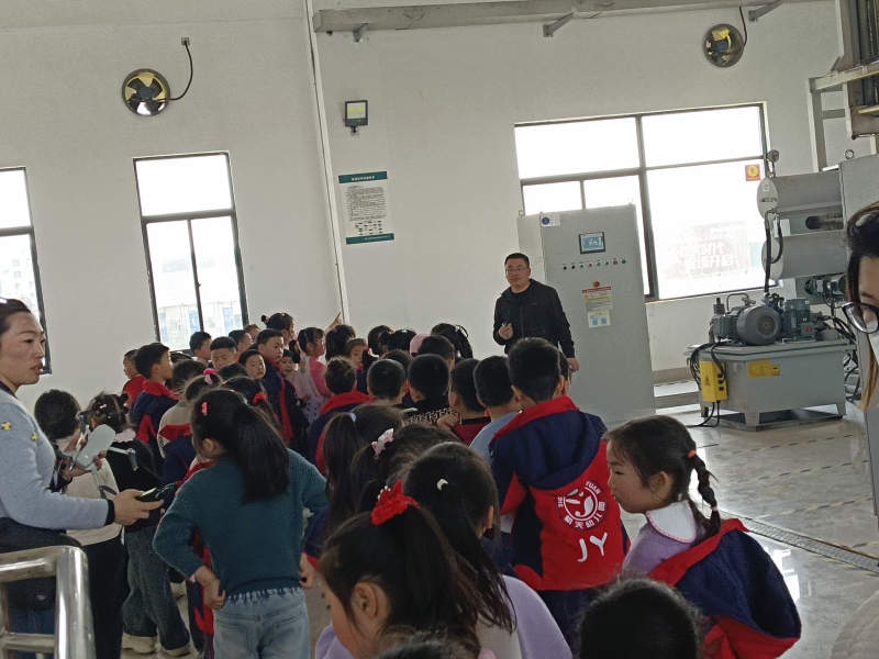 圖為向小朋友們講解污泥的處理過(guò)程?吹酱笮偷臋C(jī)械設(shè)備小朋友充滿好奇。