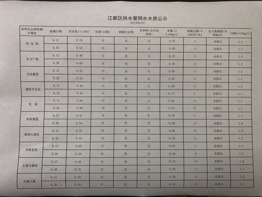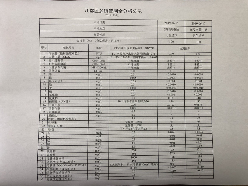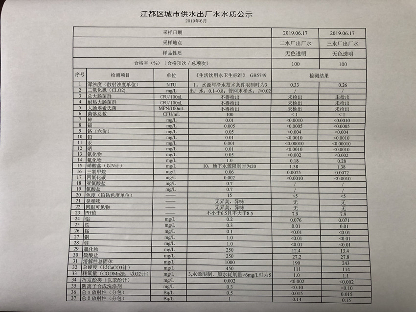 水質(zhì)公示