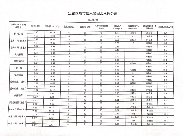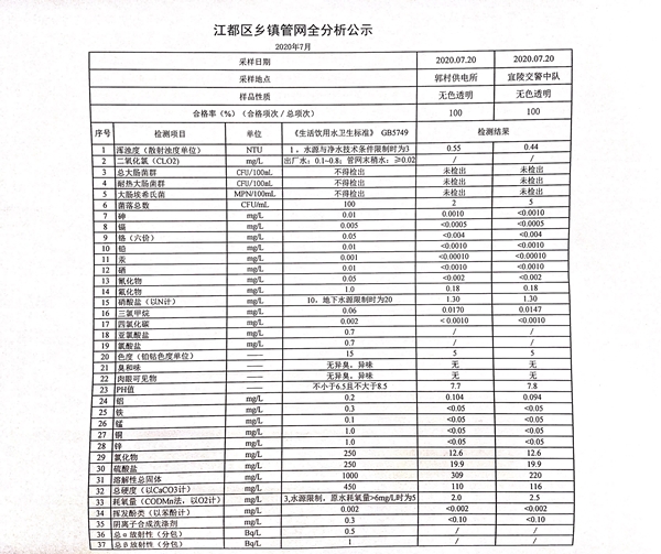 水質(zhì)公示