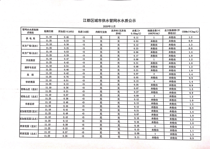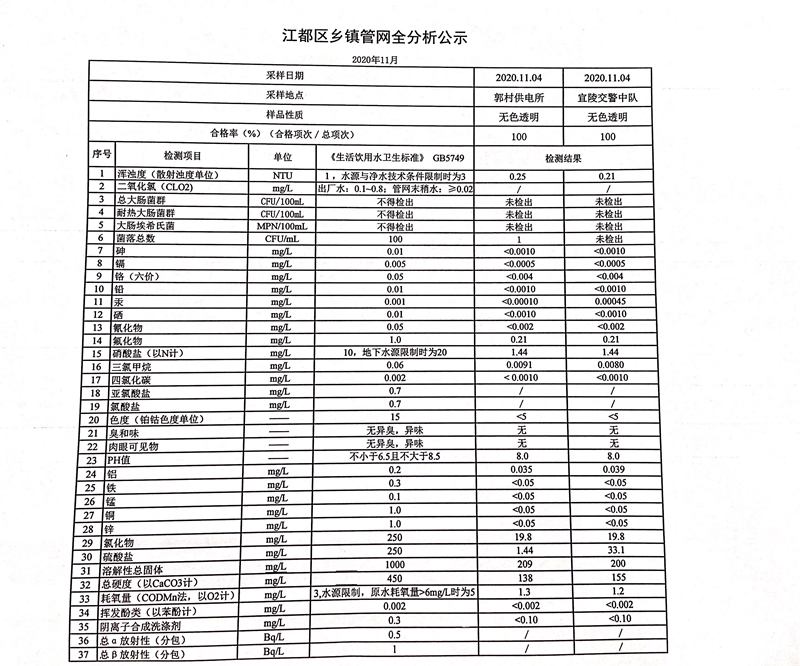 水質(zhì)公示