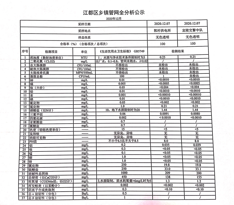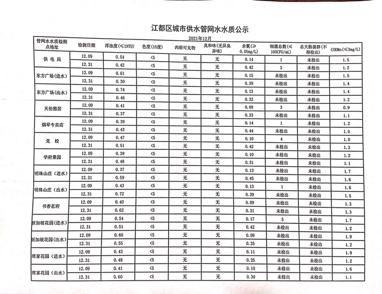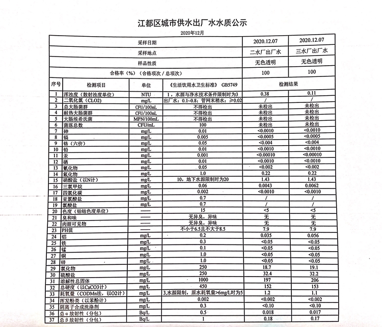 水質(zhì)公示