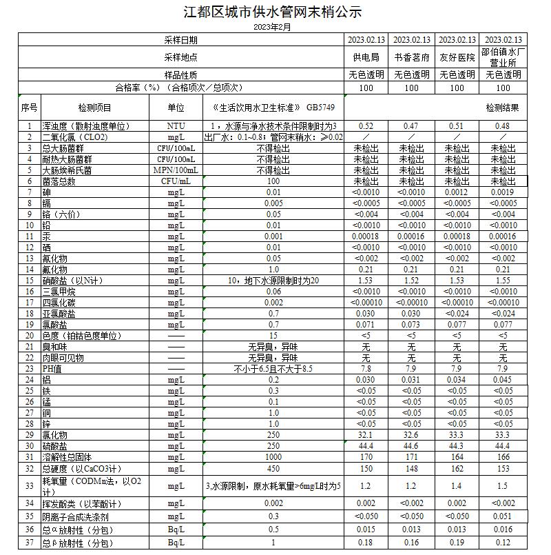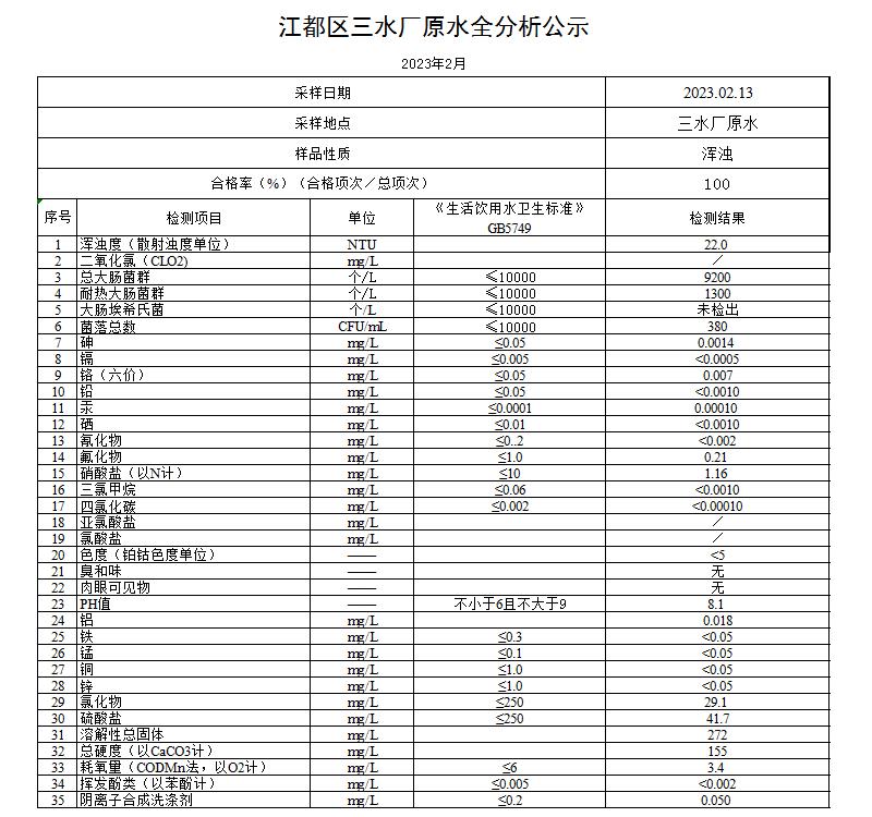 水質(zhì)公示