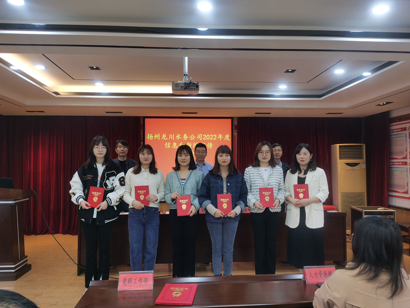 緊接著,對照公司宣傳報道考核辦法,會議通報了2021年度相關考核和獎勵兌現(xiàn)統(tǒng)計結果。根據(jù)部門及個人年度積分情況,授予黨群工作部、綜合管理部、龍泉建設工程公司、自來水公司“宣傳工作先進集體”榮譽;授予王麗君、季藝、邵先知、顧晨、高丹婷、張麗“優(yōu)秀信息員”榮譽;另外,《源源凈水潤萬家——揚州龍川水務公司隆重舉行慶祝建黨一百周年——第二自來水廠深度處理工程運行通水儀式》、《踐行社會責任 彰顯國企擔當》等六篇稿件入選“優(yōu)秀信息”,與會領導向獲獎單位和個人頒發(fā)了榮譽證書及稿酬。