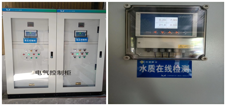 二次供水智慧化標準泵房是高層住宅居民小區(qū)中的重要配套設施,我公司高度重視,并首先在梧桐公園小區(qū)進行試點并已建成使用,在此建設和推廣過程中,均要求做到:每個泵房的控制柜分別控制與其相對應的設備;配有渾濁度、余氯和PH值在線檢測設備;24小時檢測出水渾濁度、余氯和PH值三個指標確保每戶市民用水安全;此外,每個控制柜配有觸控屏幕,詳細記錄實時進水壓力、出水壓力、變頻數(shù)值、機泵運行等參數(shù)指標。