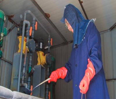 圖3開啟揚(yáng)州應(yīng)急轉(zhuǎn)供水閥門 圖4投加高錳酸鉀