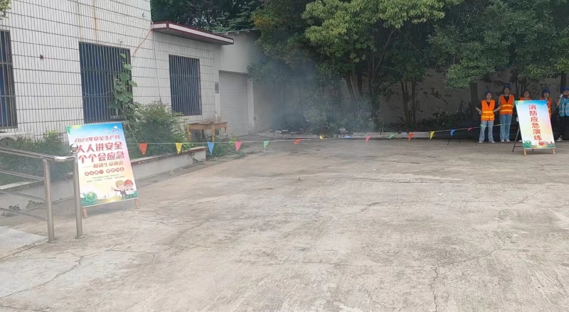 演練組組長各自帶隊進(jìn)入演練等候區(qū)域,應(yīng)急成員燃放兩枚煙霧彈,隨著現(xiàn)場指揮鳴哨警報火情,參演組聽到哨音警報后由各組組長帶隊,參演人用毛巾捂住口鼻,緊靠樓道墻體,有序地緊跟隊長撤離火場。逃生演練結(jié)束后,疏導(dǎo)組引領(lǐng)參演人員進(jìn)入滅火演練等待區(qū)域,先由應(yīng)急成員進(jìn)行滅火示范,然后各參練人員先后分別使用滅火器進(jìn)行現(xiàn)場滅火演練。最后應(yīng)急成員負(fù)責(zé)將演練火種全部熄滅。