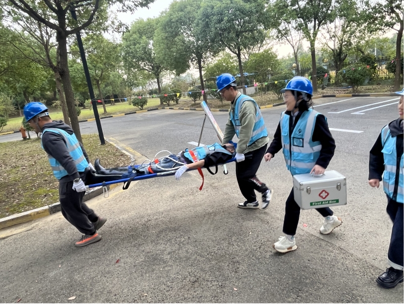 經(jīng)檢測,空氣檢測數(shù)據(jù)符合搶修要求,搶險組下井救援,入井后給傷員穿戴防護救援設(shè)備,救護組、搶修組共同將傷員脫離閥門井,放入擔(dān)架。救護組將擔(dān)架抬到通風(fēng)處,進行現(xiàn)場急救,等待救護車。聯(lián)絡(luò)組向上級匯報搶險人員實時情況,指揮組向上匯報,傷員已脫離閥門井,至此演練結(jié)束。