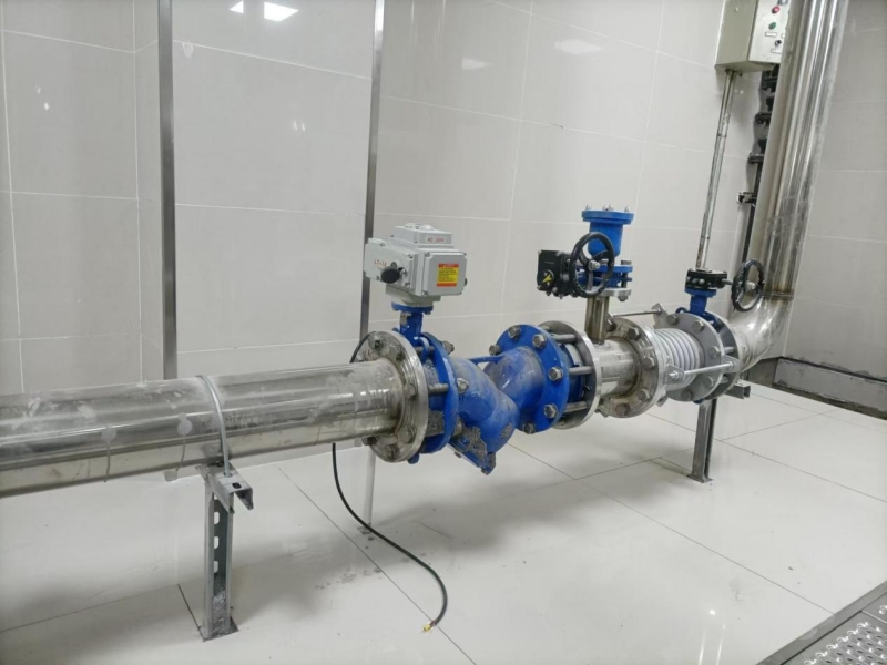 進(jìn)水管道改造增加過濾器、電動(dòng)閥門、流量器、防止倒流器