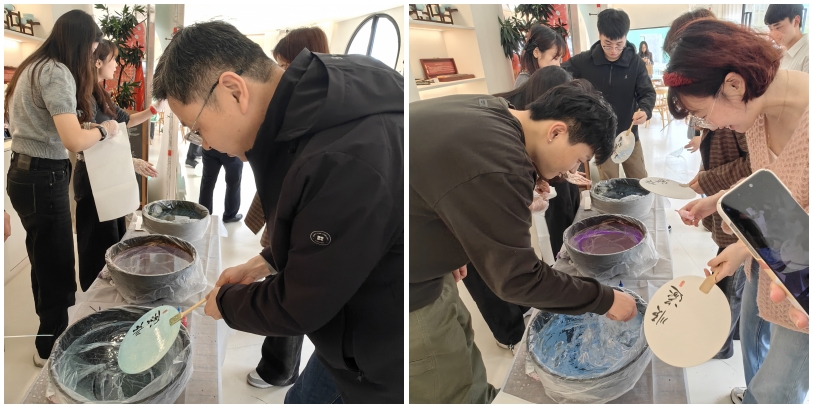在思想的遠航之后,活動轉入非遺文化體驗環(huán)節(jié)。青年員工們共同感受流淌在指尖的千年文脈,在專業(yè)老師的指導下體驗漆扇制作技藝。在準備扇面、滴入漆料等一道道工序中,大家不僅領略了傳統(tǒng)工藝的精妙絕倫,更深刻體會到中華優(yōu)秀傳統(tǒng)文化的深厚底蘊。活動現(xiàn)場歡聲笑語不斷,一件件獨具匠心的漆扇作品在巧手中誕生,展現(xiàn)出青年一代對傳統(tǒng)文化的創(chuàng)新理解。